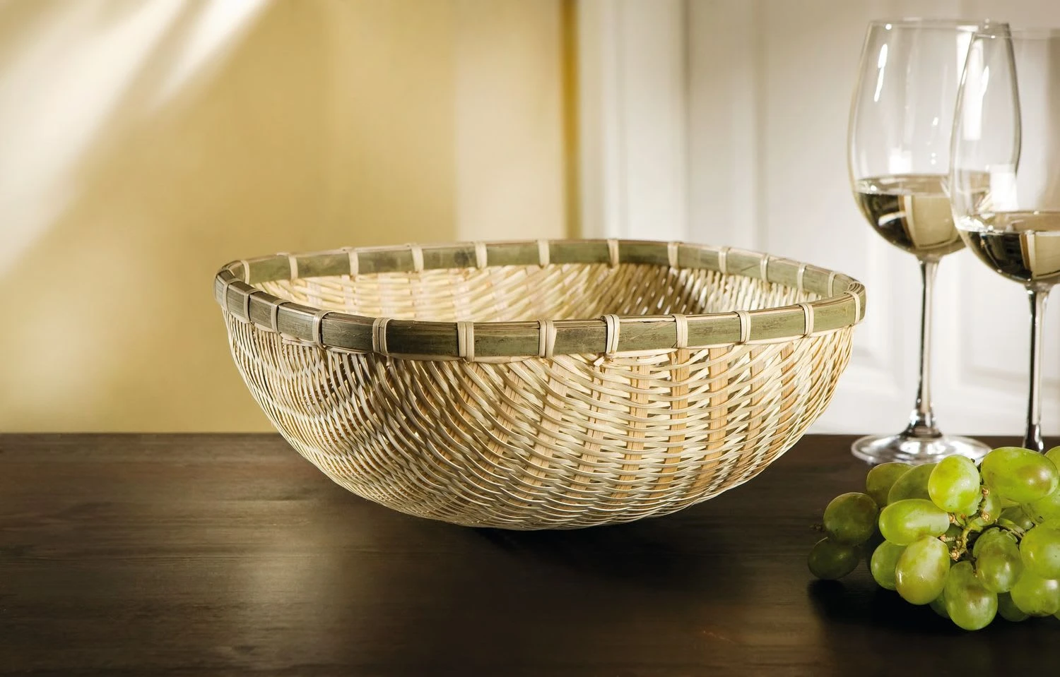 Bambus in hellem Naturton mit dekorativ geflochtenem Rand